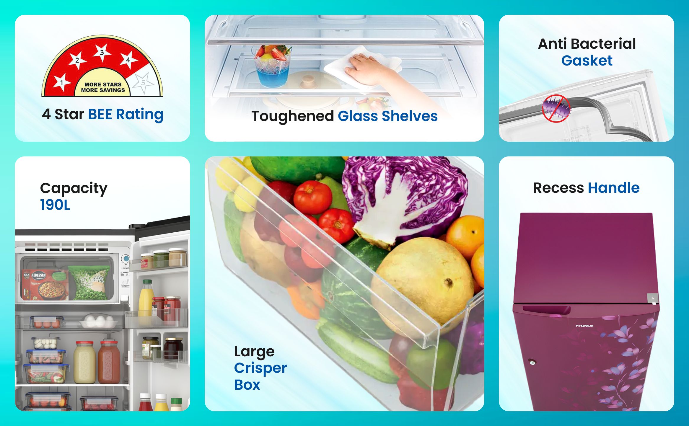 REF HP192PTRW-QEH Refrigerator Direct Cool General Capacity: 175 L Cooling Type: Direct Cool Fresh Shield BEE Rating: 2 Star Anti Fungal Door Gasket Toughened Glass Shelves Large Vegetable Crisper Compressor Warranty: 10 Years Odor Eliminator